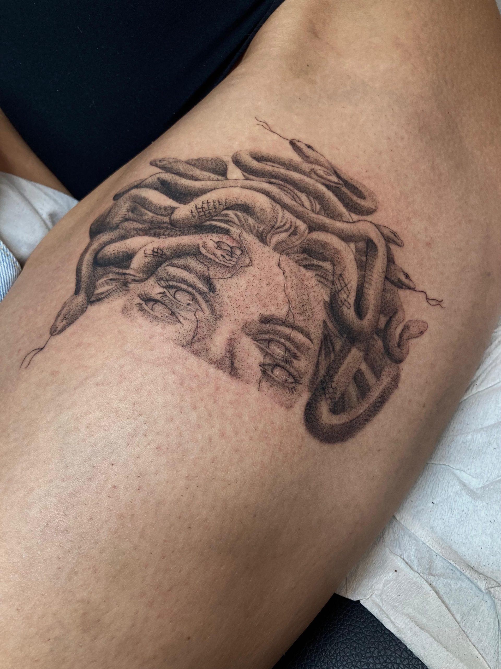 La técnica reina del tatuaje. El Realismo (Black & Grey y Color) es la prueba definitiva de la habilidad de un artista, y en Retiro Tattoo contamos con auténticos especialistas en el dominio de la luz y la sombra. No se trata solo de copiar una imagen, sino de interpretar volúmenes, contrastes y texturas para que el diseño cobre vida sobre la piel. Trabajamos con capas suaves y transiciones invisibles para lograr un acabado fotográfico impactante que mantiene su definición y profundidad con el paso de los años