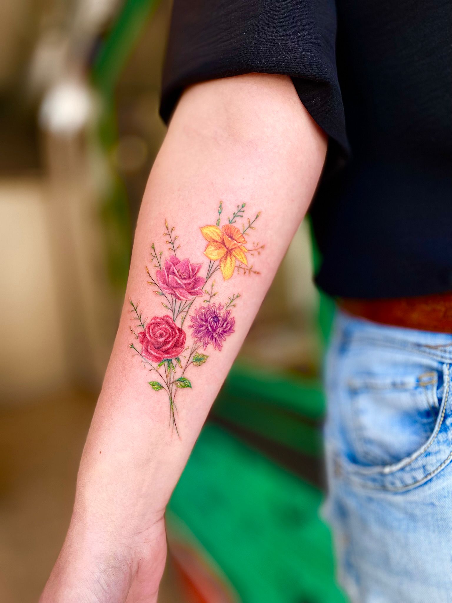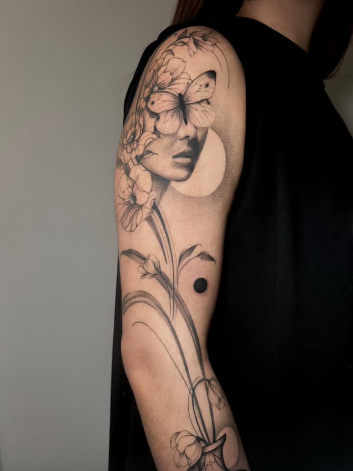 La naturaleza diseñada para tu cuerpo. El Tatuaje Floral no consiste simplemente en estampar una flor, sino en crear una composición orgánica que respete y realce tu anatomía. En Retiro Tattoo somos expertos en ‘Freehand’ (mano alzada) y diseño anatómico: adaptamos tallos, hojas y pétalos para que fluyan con las curvas de tus músculos y huesos. Ya sea una enredadera que recorre la cadera o un bouquet que envuelve el brazo, buscamos que el tatuaje tenga movimiento y armonía natural, como si hubiera crecido en tu piel.